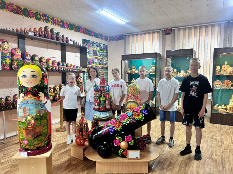 27 мая экскурсионная группа побывала в Музее матрешки. Встреча с деревянными расписными игрушками удивила всех и оставила в полном восторге. В «матрешечном царстве» ребят ждали маленькие матрешечки и огромные с человеческий рост, выполненные в стиле полховско-майданской росписи, авторские работы вознесенских мастеров: персонажи из сказок и мультфильмов - 33 богатыря и расписная пушка из дерева, Буратино с Мальвиной, смешарики и Маша с Мишей, а также избушка на курьих ножках, мельница-вертельница, музыкальная шкатулка, самовары, вазы… Сейчас экспозиция насчитывает более 3000 экспонатов.