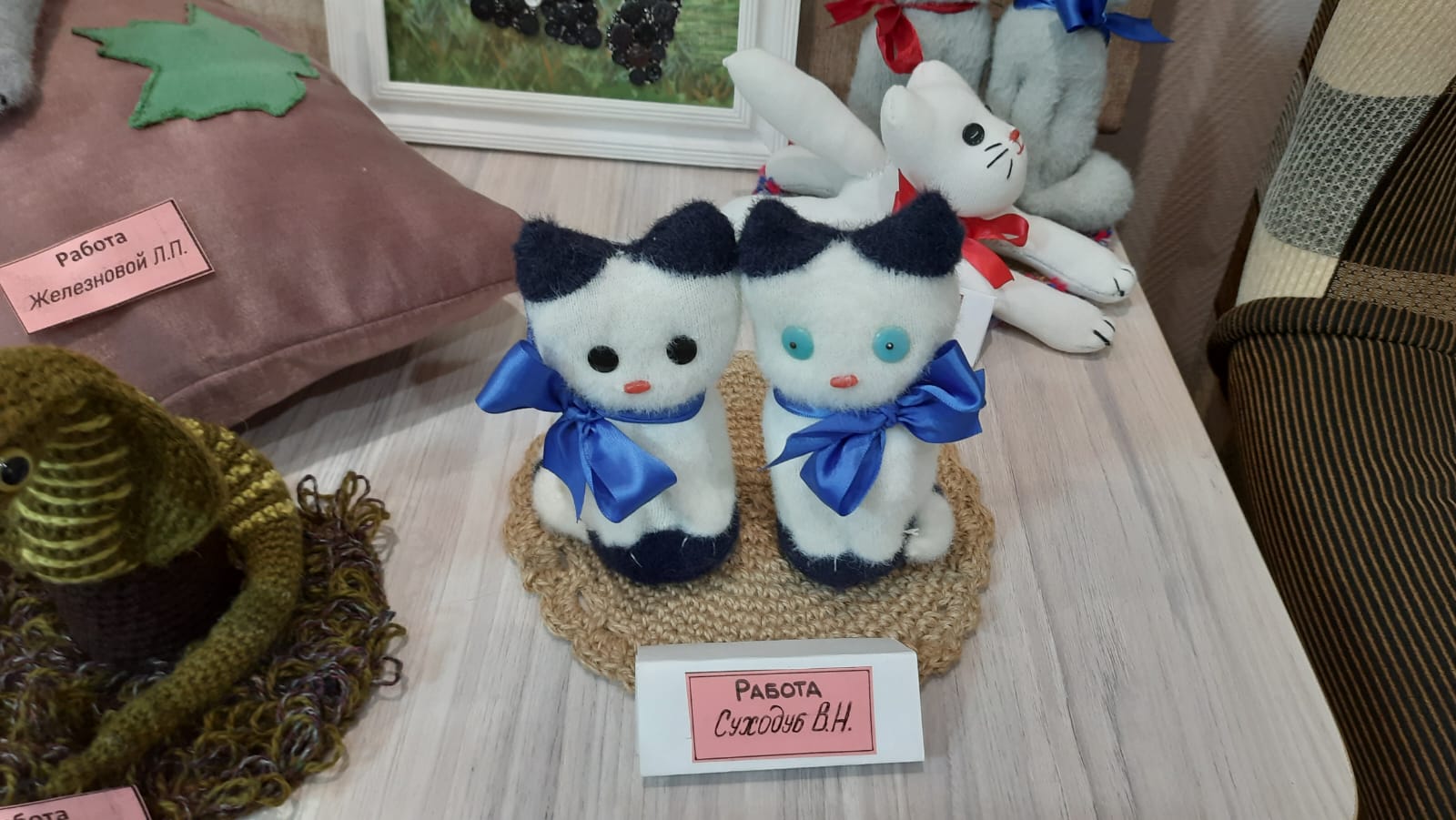 В отделении дневного пребывания нашего Центра открылась выставка работ отдыхающих под названием "Глаза боятся, а руки делают!". Под руководством талантливого мастера по трудотерапии Гашковой Ольги Леонидовны, наши мастерицы изготавливают удивительные поделки своими руками — мягкие игрушки, уютные подушки, яркую мозаику из пуговиц и алмазных страз, шкатулочки и многое другое. Изготовление поделок имеет огромное значение для людей старшего возраста. Во-первых, это развивает мелкую моторику и координацию движений, что особенно важно для поддержания физической активности. Во-вторых, творческий процесс помогает улучшить настроение и повысить общее самочувствие. Каждая созданная вещь — это не только продукт труда, но и источник радости, удовлетворения и гордости за свои достижения. Сам процесс творческой деятельности также очень способствует социализации: участники мастер-классов общаются друг с другом, делятся опытом и могут вместе обсуждать идеи для новых проектов. Это укрепляет дружеские связи и создает атмосферу поддержки и понимания. Кроме того, изготовление поделок помогает сохранять умственную активность. Наши мастерицы учатся новым техникам, развивают креативное мышление и открывают в себе новые таланты. Это вдохновляет их на дальнейшее творчество и активную жизнь. Мы гордимся работой наших дорогих подопечных и выражаем искреннюю благодарность Ольге Леонидовне за её терпение, поддержку и вдохновение, которые она дарит всем желающим реализовать свои креативные идеи и научиться чему-то новому. Желаем нашим мастерицам и инструктору по труду безграничного творческого вдохновения на всю жизнь! Пусть каждая новая поделка станет для вас источником радости и способом самовыражения