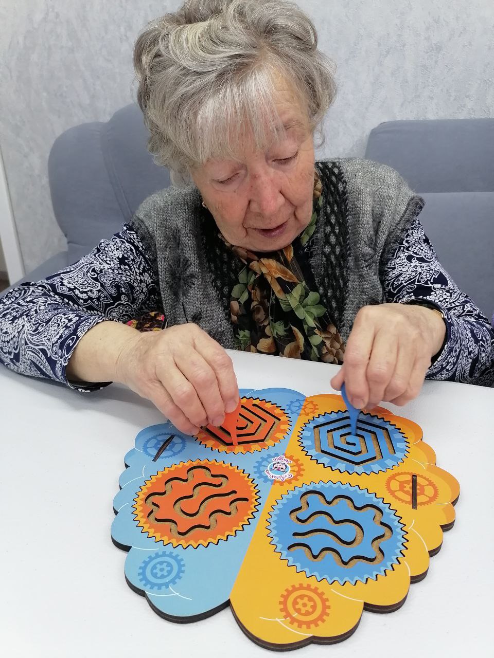В отделении «Специализированный жилой дом для граждан пожилого возраста и инвалидов» ГБУ «Комплексный центр социального обслуживания населения Краснобаковского муниципального округа» продолжается работа по программе «Ключи к здоровью».Жители отделения активно занимаются с межполушарными досками.Упражнения с межполушарными досками стимулируют развитие мозолистого тела – структуры, отвечающей за передачу информации между полушариями мозга. Это улучшает синхронизацию и координацию между различными участками CNS. Работа с палочками-стилусами развивает мелкую моторику и координацию движений рук.