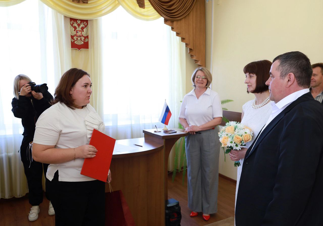 Также семью поздравила заведующая отделом семьи ГБУ "КЦСОН Краснобаковского муниципального округа" с бракосочетанием и пожелала счастливой семейной жизни.