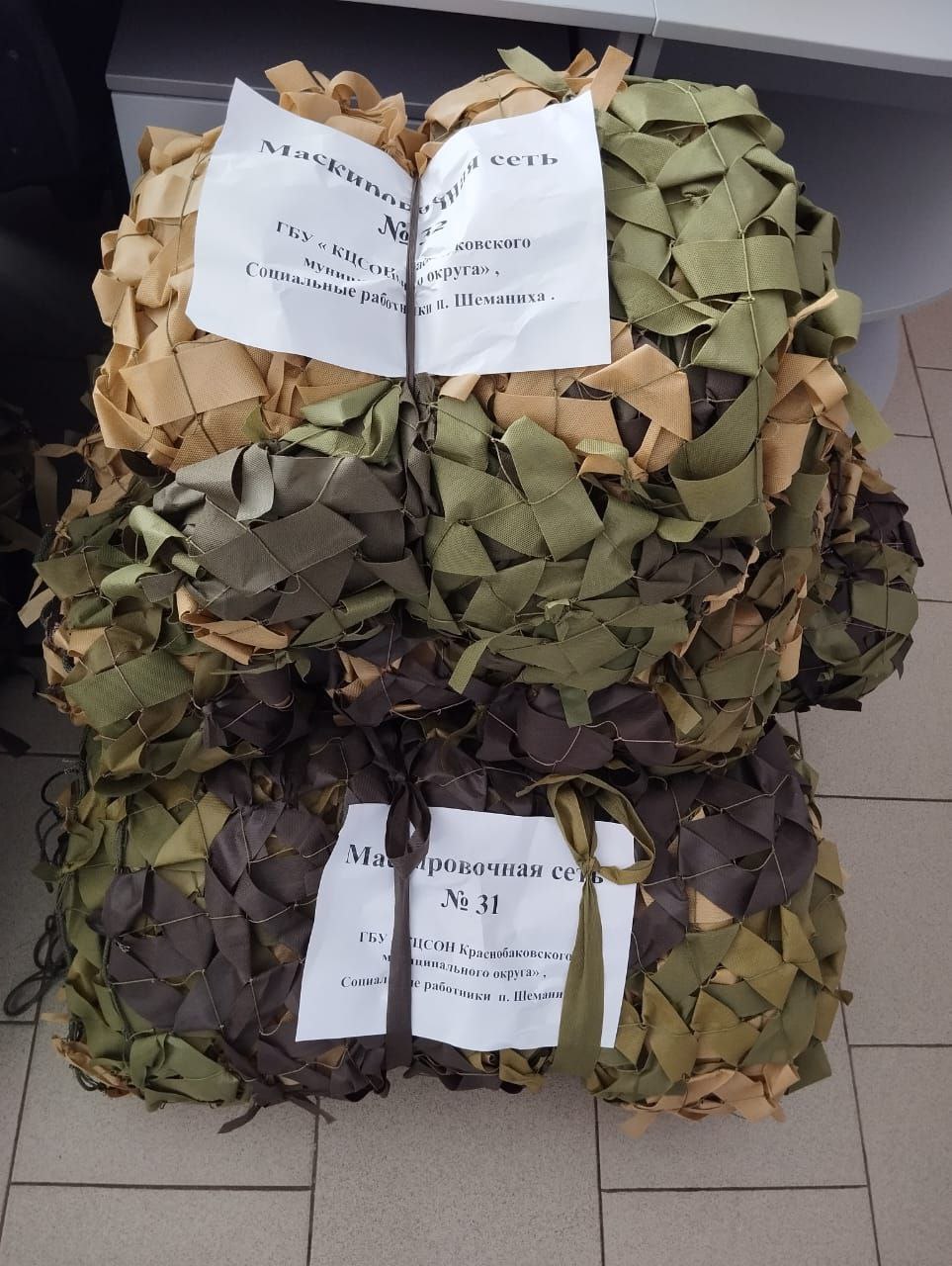 Социальными работниками ГБУ "КЦСОН Краснобаковского муниципального округа" изготовлено ещё несколько маскировочных сетей для отправки в зону действия СВО