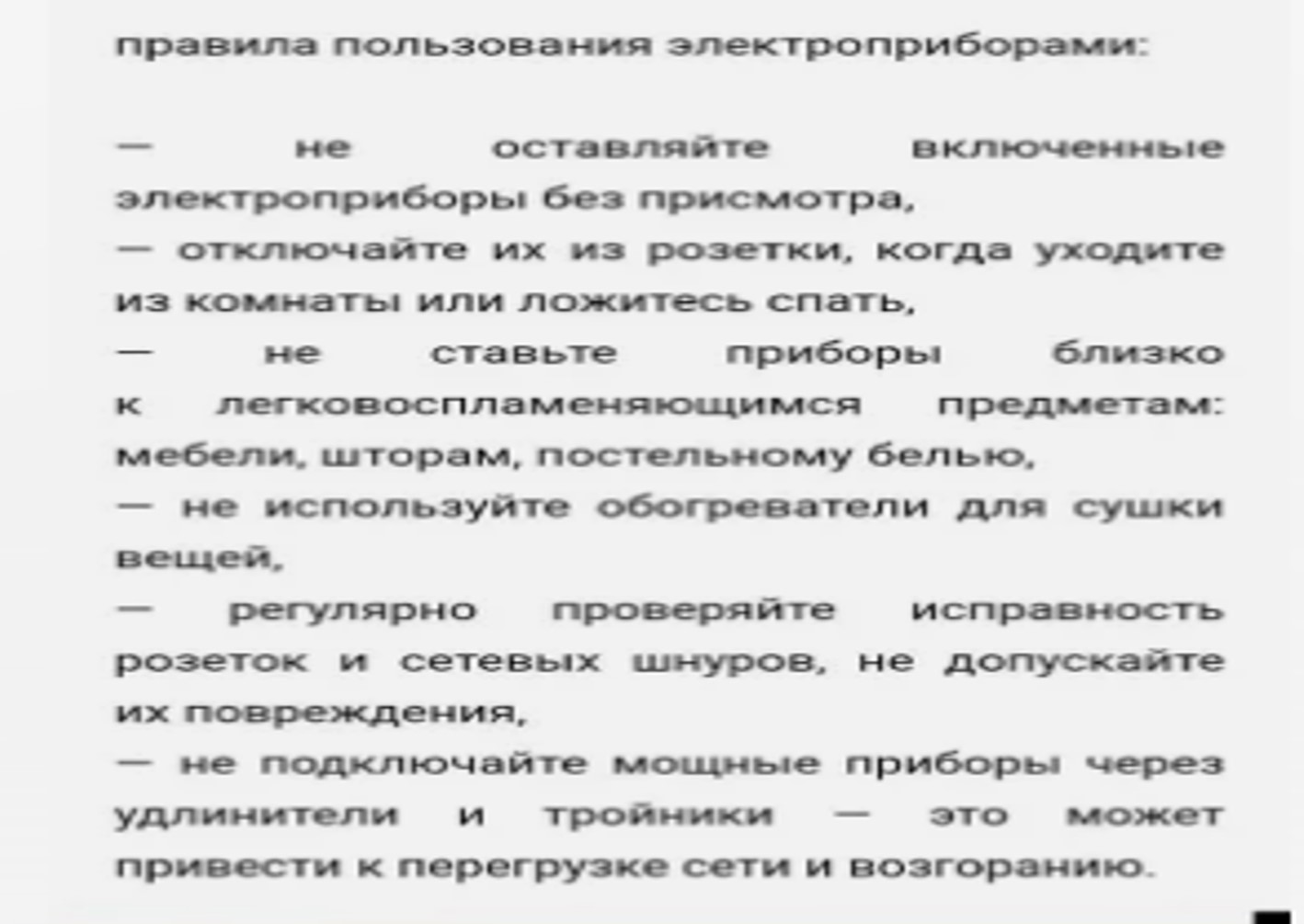 Правила пользования электроприборами