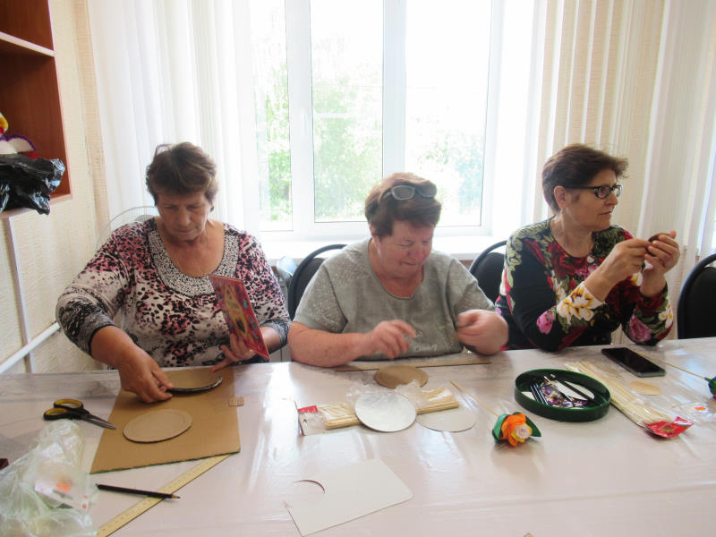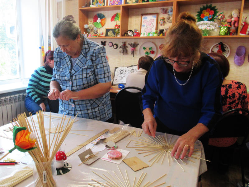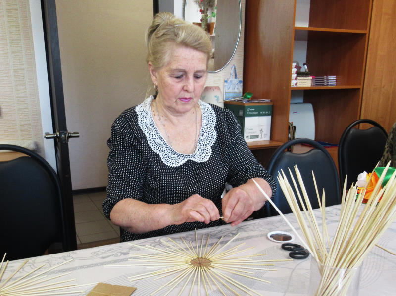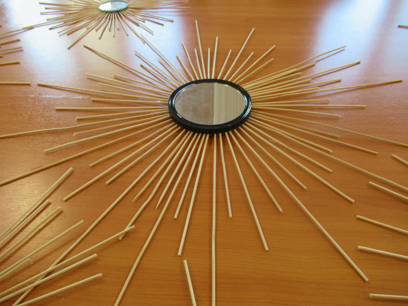 На занятии трудотерапии отдыхающие отделения дневного пребывания ГБУ «ЦСОГПВИИ Лысковского м. о.» изготовили панно «Зеркальное солнце». Как приятно и радостно дополнить интерьер своей работой.