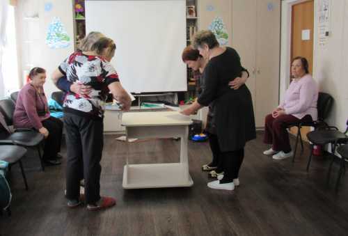 Для отдыхающих отделения дневного пребывания ГБУ «ЦСОГПВИИ Лысковского района» прошла познавательно-игровая программа «Соединяя круг друзей». Не разжимая дружеских объятий, отдыхающие играли, бегали, вырезали фигурки из бумаги, продемонстрировали разные виды объятий.