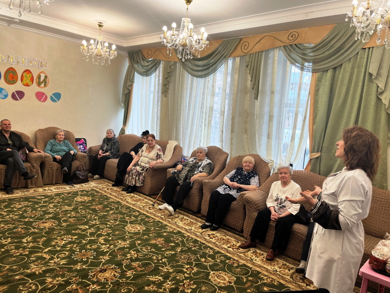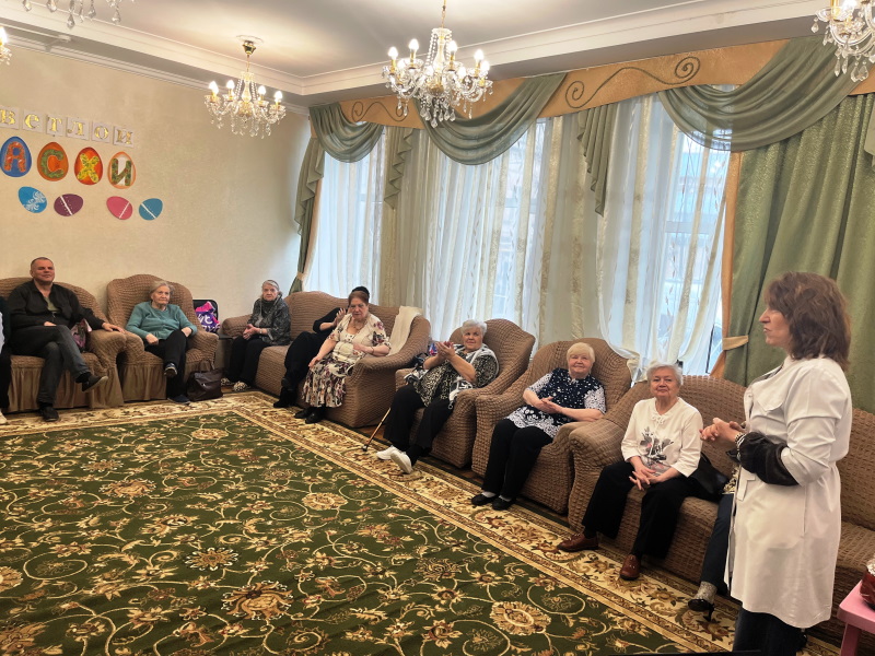 В преддверии Праздника Светлой Пасхи с пенсионерами, отдыхающими в отделении дневного пребывания, была проведена беседа на тему щадящего и адекватного выхода из поста. Как правило, в это время происходит резкая смена пищевого поведения. Обилие жирной, калорийной пиши может привести к катастрофам в желудочно-кишечном тракте. Врач рассказала об алгоритмах перехода к привычному режиму питания, медикаментозной поддержке в этот период и необходимой двигательной активности, влияющей на работу кишечника.