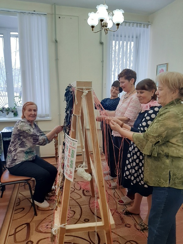 В отделении дневного пребывания Центра социального обслуживания г. Павлова работа серебряных волонтеров идёт полным ходом. Продолжаем вязать тёплые носки и освоили изготовление маскировочных сетей, причём, плетем их сами! Наших волонтёров не пугает такая тонкая работа, т.к. желание быть полезным сильнее. Работа находится для каждого. Кто-то заготавливает нити и нарезает ткань, а кто-то связывает сотни маленьких узелков. И этот двигатель доброты, заботы - не остановить! Верим в победу и можем помогать!