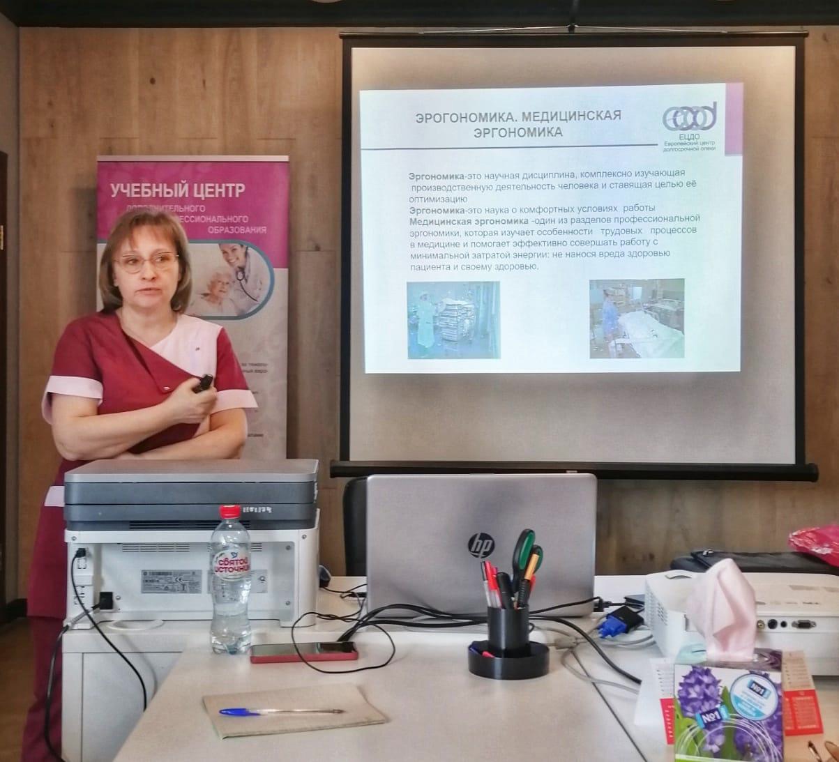 Практические занятия проходили в хосписном отделении городской больницы №47, где социальные работники ухаживали за тяжелобольными пациентами, проводили гигиенические процедуры. Завершилось обучение тестированием, которое все успешно сдали и получили удостоверение о повышении квалификации.