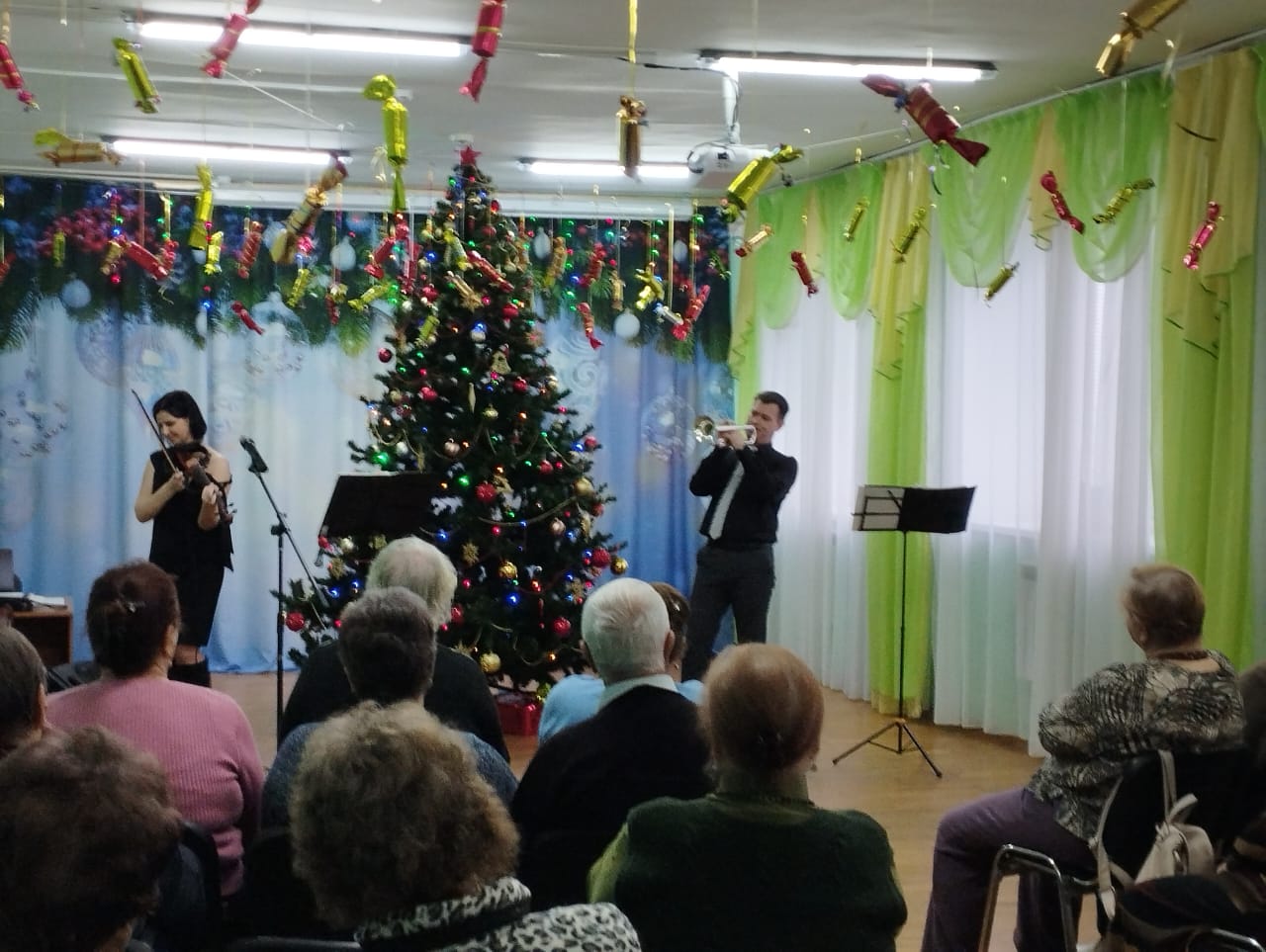 20 декабря для отдыхающих отделения дневного пребывания состоялся концерт от преподавателей МБУ ДО «Детская школа искусств» г.Выкса. Мировые хиты от классики до современности прозвучали в исполнении инструментального дуэта-Татьяна Алямкина (электроскрипка) и Данил Кононов (труба).